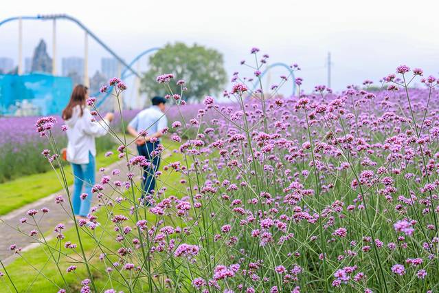 同样是紫色,但是有高有矮,一般相对矮一些到膝盖高度的是薰衣草,而有将近一人高的则是马鞭草。