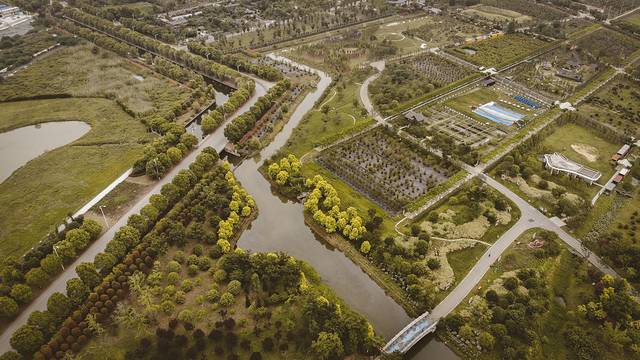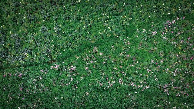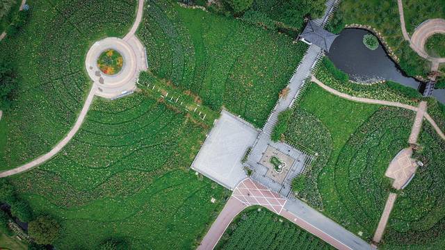 顺着拈花大道可以一路走到花海,五六月份正是马鞭草花开的季节,而夜晚的花海,灯光璀璨。红色、蓝色、绿色的霓虹灯光在草丛中交替变幻,丛中央一颗 大树 闪着绿色的微光,尤为醒目,仿佛一颗幸福树,照亮着黑夜中前行的路。可以沿着丛中小路一路而行,也可以走一旁的柏油马路。