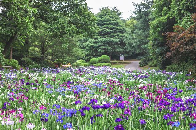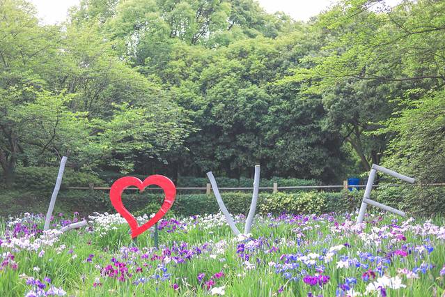花菖蒲原为日本佐原市的市花,品种主要保存在中日友好花菖蒲园。该园位于风景区充山隐秀景区,占地面积10000余平方米,花菖蒲品种157个,10万余株,数量之多,品种之丰富,花菖蒲园再现自然界的森林、草坪、沼泽、水池景观,通过植物造景表现花菖蒲的群体类,园内路面由碎砾石铺设,木制平桥、园名牌,造型简洁,色彩自然,另在中心地带由石灯笼与块石、卵石等组合布置,体现了日式园林的特色。