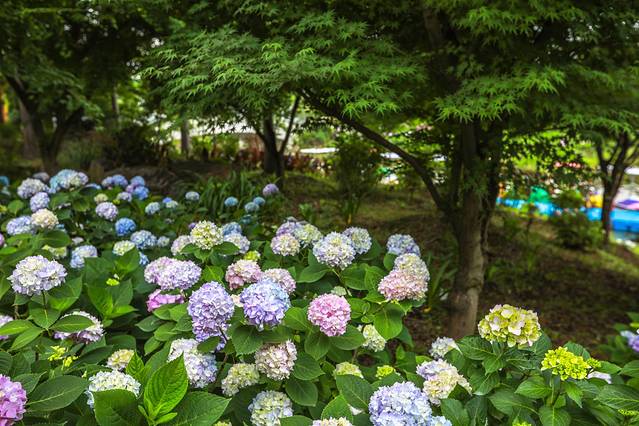 九龙湾花彩小镇的花星球,是个名副其实的花花世界,一年四季都有不同的花开,5月~6月是杜鹃、紫藤、月季、睡莲、绣球花的季节,对于绣球花真的是爱了,随便凹造型都能拍出满意的大片来,稍微P一下,南法的浪漫风情就出来了呢!喜欢拍照的MM们,服装上可以选择浅色飘逸的长裙或者田园风的搭配,都是非常适合的装扮。