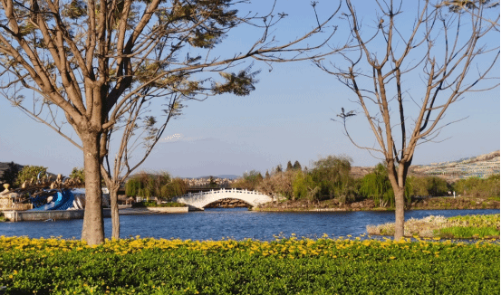 置身古滇度假区,才知道整个度假区很大,想要3天体验所有的项目是不可能的。奔波了一天,第一天下午,只想悠闲的先随便逛逛。听前台工作人员介绍可以到距离酒店1公里左右有个精品湿地可免费入园游玩,风景优美是滇池边的森林氧吧。