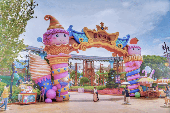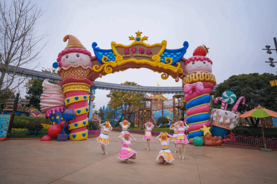 童梦世界果然地如其名,到处都是糖果色,蛋糕做成的房屋、洒满糖果的水池、魔幻可爱的魔法树屋,所有跳跃的颜色搭配在卡通造型建筑上,不但不土,还满满的少女心呢,仿佛闯入了魔法仙子的家!