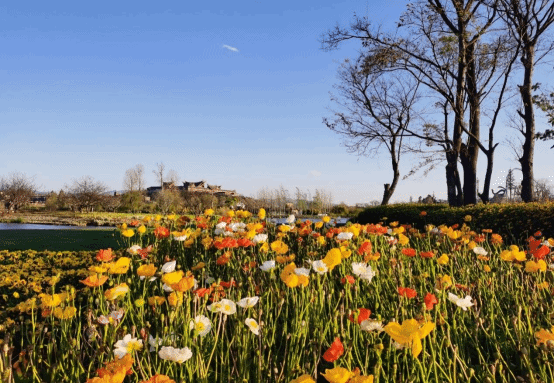 这里树木茂盛、遍地鲜花,鸟语花香里更是野趣横生。看着蔓延的苍翠绿色、水波潋滟,有一种心旷神怡的清爽。