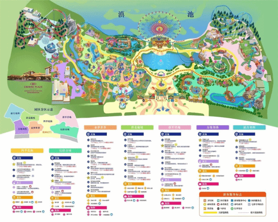 乐园的开放时间:10:00~21:00(周一至周五开放至19:00),整个园区包含童梦世界、四季花海、滇幻奇域、万象部落、滇军营地7大分区,共计81个游玩项目,建议早点来,避免排队