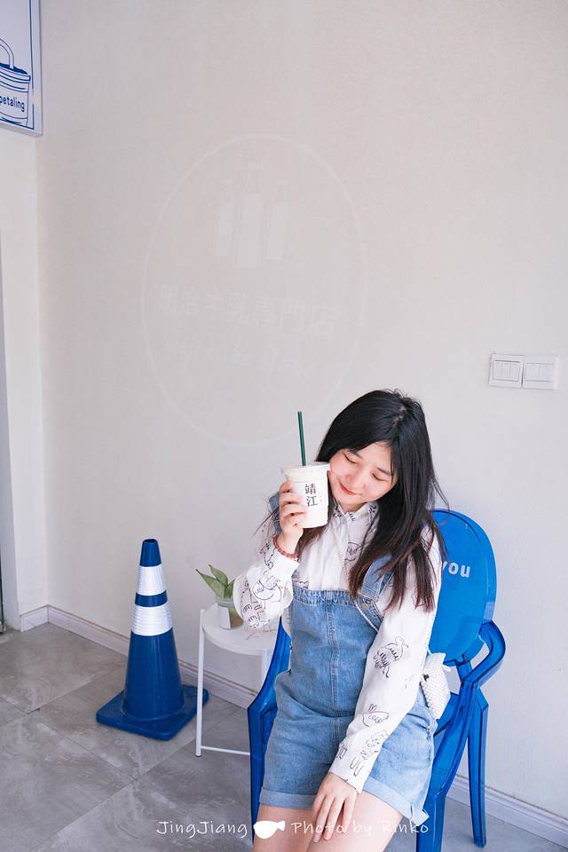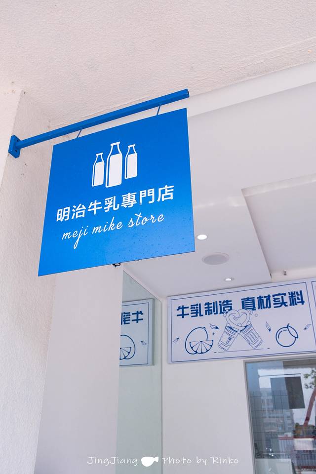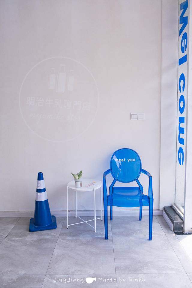 店里的整体环境是清新ins风的那种,蓝白两色为主,还挺好拍,门口的熊熊和蓝色的椅子都能出片。我可太喜欢门口蓝色的“明治牛乳专门店”的牌子了。