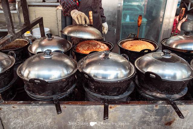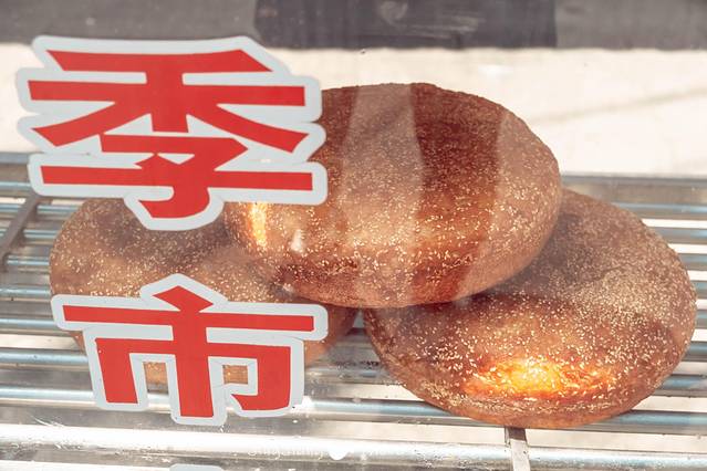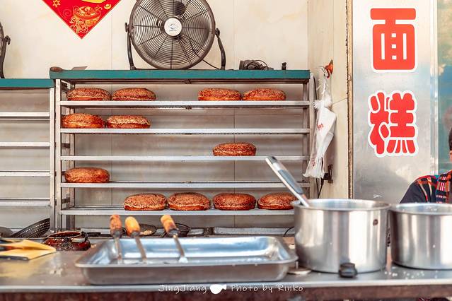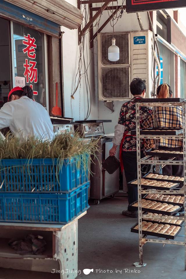 远远就能看到两排整齐的平底锅,酵饼在炉火上烘烤,油香、面香、芝麻香交织成一场嗅觉的狂想曲。酵饼深受本地人喜爱,对于我来说这个尺寸实在有点大了,分量十足,吃一个可能一天都不用吃饭,店内还卖酒酵馒头,试吃了下,甜甜的香味,夹着葡萄干,让我想起了小时候放学回家,沿街的那种美食。