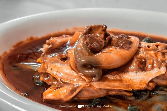 靖江的河豚做法讲究,新鲜的河豚配上老火高汤,色泽浓郁,鲜嫩香醇,最大程度上保留了鱼肉鲜美细腻,食后令人齿颊留香,甜美顺口,河豚身下配有小青菜,吸收了河豚的鲜美。靖江有句俗语说:“食过河豚无美味。”看来真是所言非虚。鱼肉上的河豚皮,要反包住鱼皮上的刺,随便咀嚼下就赶紧下咽,不然会被刺扎到影响口感哦。
