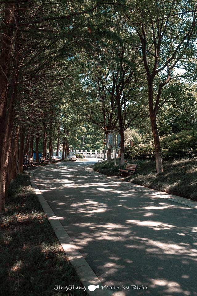 从西郊公园的东大门入园,午后的公园,阳光特别美,不用担心走在烈日下,两旁的树荫为路上的行人献上了阴凉。中午的公园是清静的,环境安逸自然。