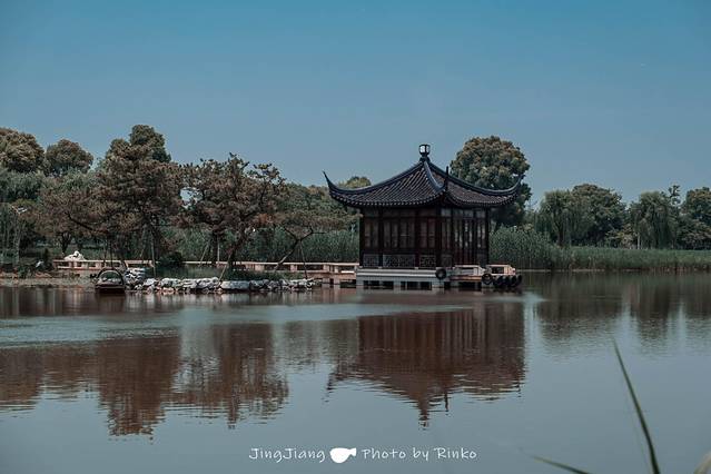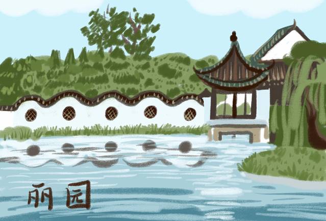 园内的亭台轩榭布置别具匠心,湖水映着花草树木,一步一景。