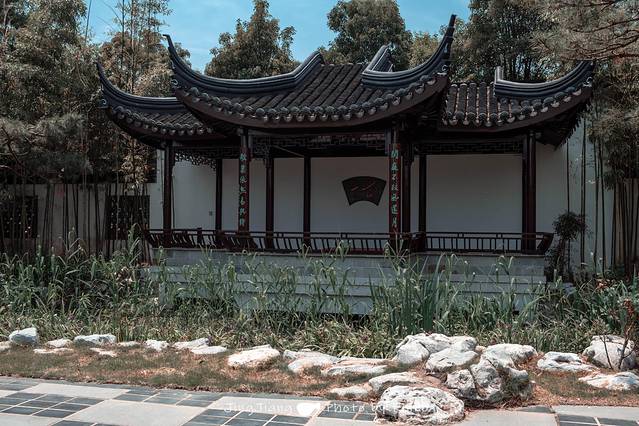 丽园距离岳庙并不远,都在生祠镇,丽园的售票处在大门对面的大厅内,进入园内,绿意盎然,建筑风格集徽派和苏扬于一体,极具江南特色,园内有上万株名贵的树木,错落有致,走过湖边,清风徐来,水波荡漾。