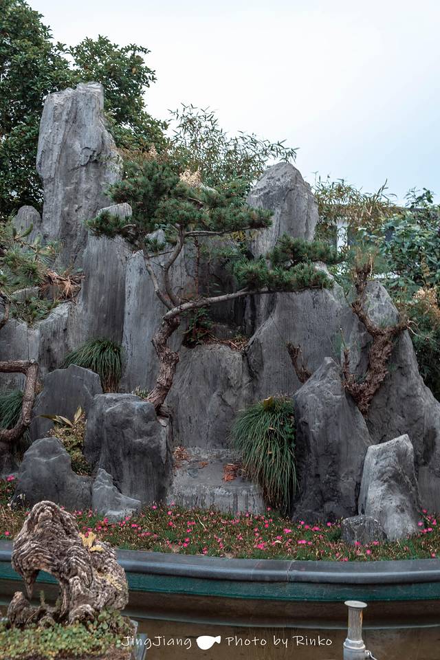 早有听闻靖江盆景甲天下的美名,看到粉墙黛瓦便是到了盆景园,徽派的建筑风格在绿色植物中别具一格,馆内有一件件精美绝伦的山水盆景,一步一丈间尽是鬼斧神工。松林波涛、桂林山水、漓江翠影,令人不禁感叹盆景艺术的脱俗境界。1996年发行的《中国山水盆景特种邮票》中的六枚就源于这些盆景原型。