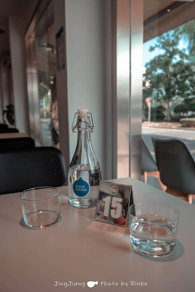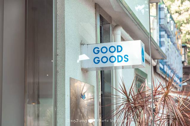 Goodgoods是一栋亮眼的白色小房子,和周围的建筑都不太一样。人不少,但仍有空位,主色调以白为主,点缀着绿色的植物。