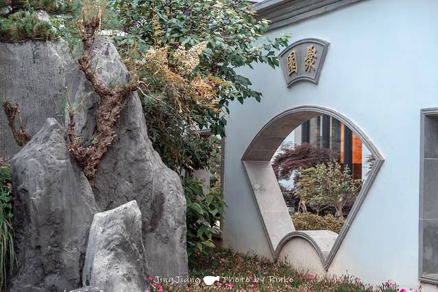 丽园的盆景园布置也很有设计感和艺术性,用过各种形状的窗与墙,使盆景的美和谐地融于景色中,相交辉映。