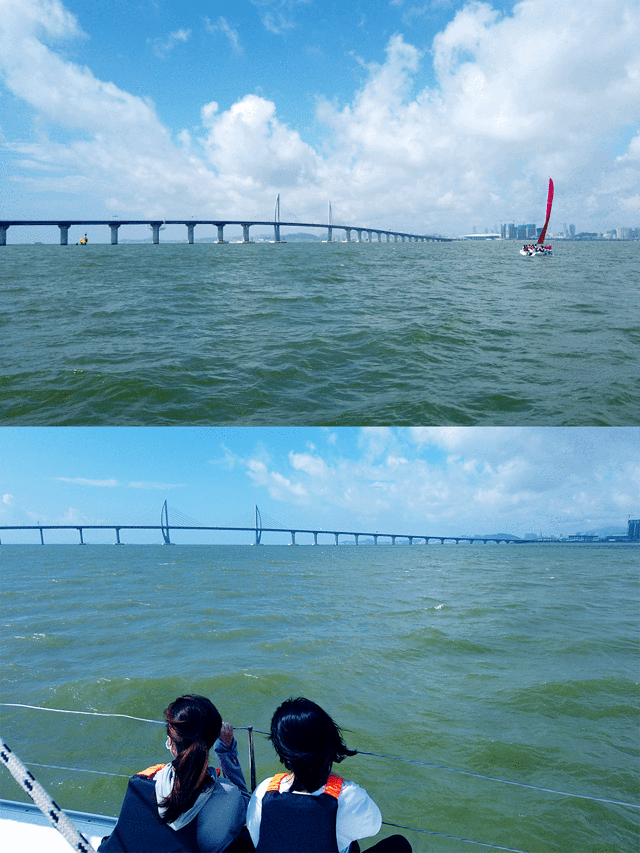 乘船从珠海国际航海文化中心出发,到海上乘风破浪可以超近距离看港珠澳大桥