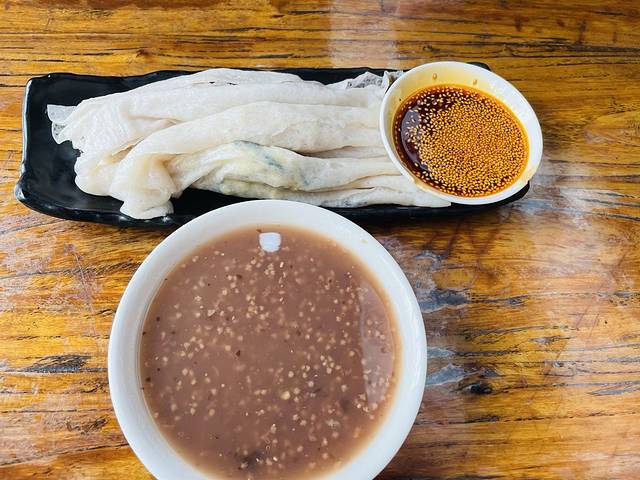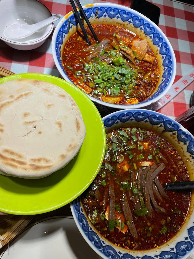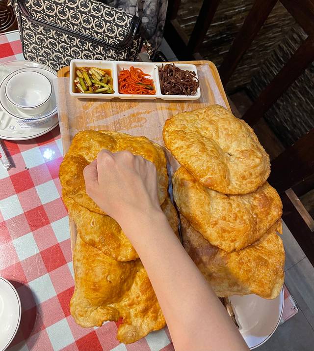 两个人点一份粉汤羊血+酥肉,酥肉真好吃,我们两个不懂点了两碗,一碗送一个面饼,我们也不懂,我又多加了一个面饼(偏硬),总共3个面饼,服务员也没提醒我们,2个人3个面饼,实属夸张