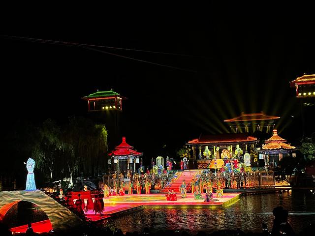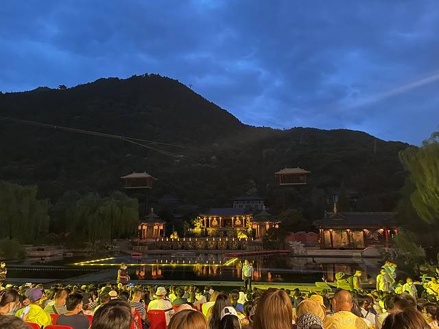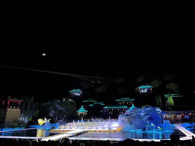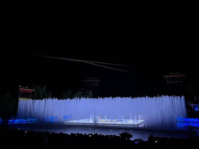 每晚长恨歌有2个场次,我们选了第一场8点10分的,第二场9点多由于天气原因被取消(真是庆幸选了第一场)不过吃晚饭那会让已经有下小雨天也很黑了,吃完饭到了华清宫门口有工作人员问要不要泡脚,一人50可以先进场,不然到时候到点进场排队会排到疯掉,姐妹的脚已经实在走不动了我们就去泡脚了,还给按摩另外算钱,43度的华清宫的温泉水,舒服~