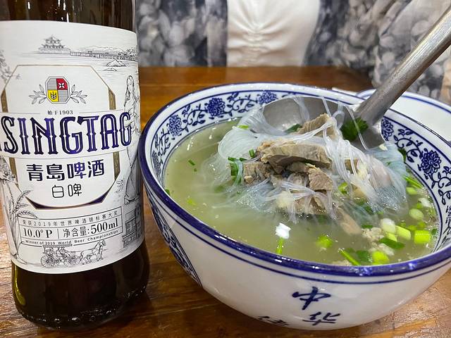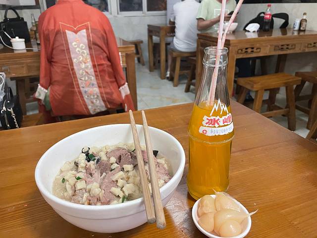 羊肉泡馍——后来才听当地人说泡馍要跟老板说要自己撕,撕成指甲盖大小的,这样才好吃,一碗吃下来可能要30min+,还点了冰峰(味道像芬达),附赠糖蒜(这个还不错),去西安我跟姐妹吃面都是两个人一碗不然份量是真大实在吃不完,这碗4分,满分5分