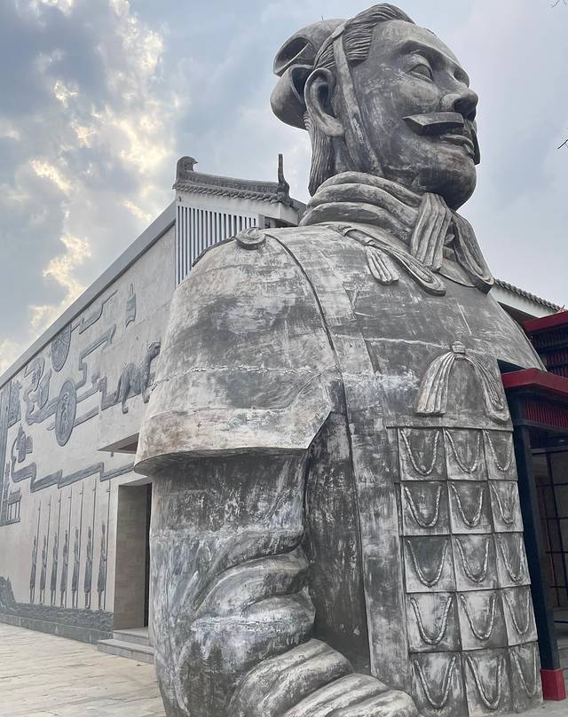 兵马俑出来要走一条游客街,挺长挺多东西,蓝田玉石榴汁兵马俑模型还有各种吃吃喝喝的店,这个雕像不错看,网上很多人打卡,不过实在没时间拍照,导游先前嘱咐赶紧走,其实这会儿我跟姐妹已经掉队了,期间狂风大作,要变天了,有点担心晚上的长恨歌演出,不过说现场会发雨衣,雨实在大的不行不可控因素只能退票,这种情况就很糟糕了