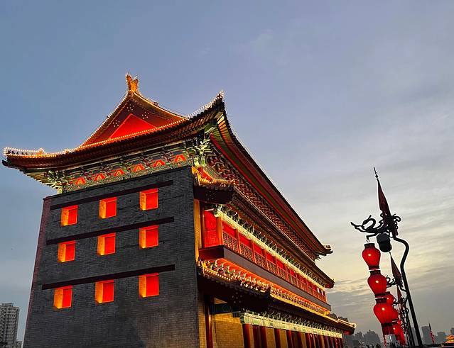 城墙离钟楼挺近的,马路上有那种类似于三轮车的拉客,我们从城墙到钟楼大概不到就几分钟的路程,挺近的,我跟姐妹在城墙上脚走的累到不行,来钟楼就是路过拍照,那个地段有点像轮渡了,车水马龙,是个圆环,钟楼可以登上去但是好像要门票,我跟姐妹就在下面看了看拍拍照感受一下,之后就又转场去洒金桥吃东西