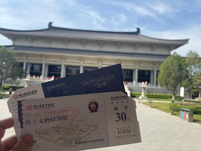 博物馆一定要提前几天在陕西历史博物馆公众号上面预约订票,有好几个馆,本来要去免费馆但是被订完了,我们订了30/人的出土文物特别展馆,可以去这个馆+免费馆,现场的电子导游一定不要租!!现场有可以拼团,2人6人10人等团的真人导游讲解,拼这个绝对值!导游拿着话筒每个人发个耳机,导游的声音不像我们外面那种拿着扩音喇叭的那种,就是只服务于有拼团的成员,陕博也是必去吧对于我这种爱好博物馆人士!