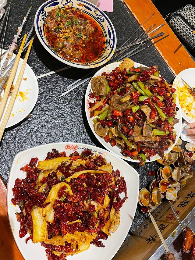 酸辣白菜(吃不来)+烤肉+羊血(姐妹很爱吃了)+爆炒毛肚(还行有点儿干)