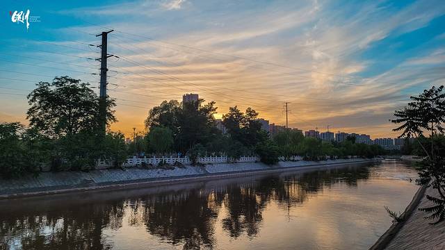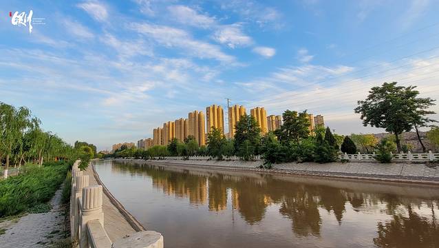 晚上8点的 银川 ,刚刚夕阳落下,酒店边上有条小河,