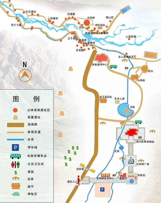 距市区56公里的贺兰口岩画风景名胜区,是贺兰山岩画的荟萃之地。