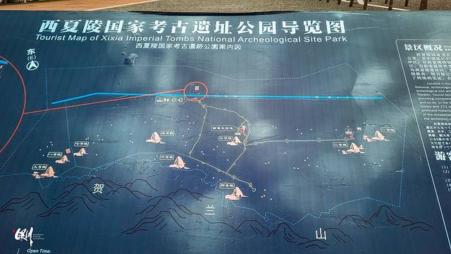 约58平方公里的范围内,随地势分布着9座西夏帝王陵园,200余座陪葬墓,是 中国 现存规模最大,地面遗址最完整的帝王陵墓之一。