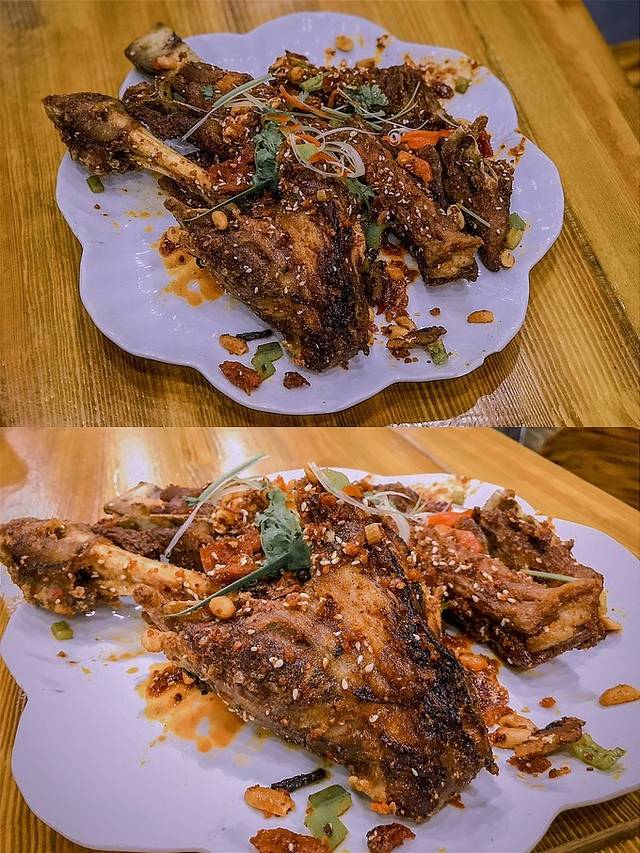 烤羊腿 / 要去会搭一个架子生烤全羊的那些店,羊肉新鲜,烤得外脆内嫩,去了大 西北 才知道什么是正宗的味道。