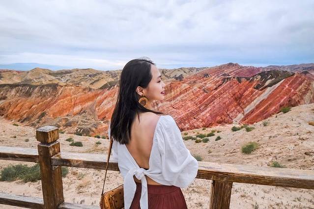 观光车是单向线,从北门进️北门出,从西门进️西门出,错过了一个观景台只能重新绕一圈回去。建议下午4-5点进入,光线正好,从北门进依次经过1.2.3.4号平台,每到一处景点,都对大自然造就这人间绝色叹服不已!推荐2.4号平台可以停留时间久一点,4号七彩锦绣台观看到的地貌发育于 祁连 山山麓 祁连 山大断裂带,山体两侧红、白、黄均匀分布的彩带一般。4号平台约晚上8点半左右看日落我们去那天阴天看不到,有点遗憾!