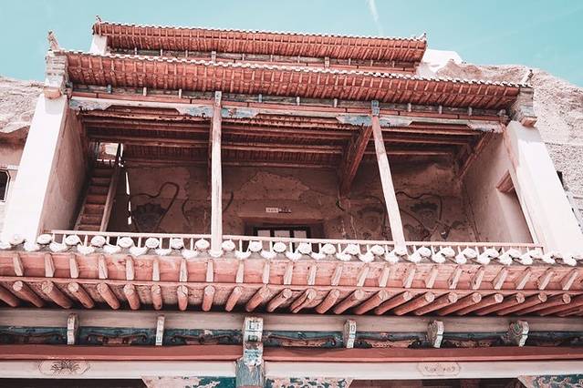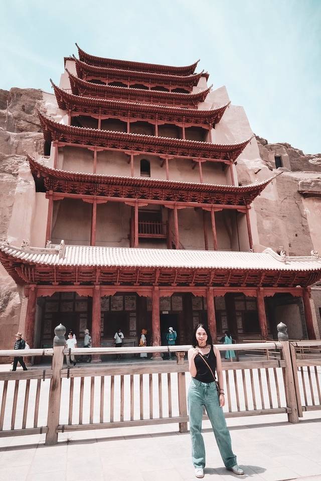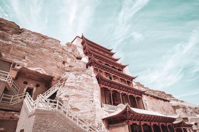 九层楼是莫高窟的标志性建筑,就是必参观的96窟,窟外的红色木构窟檐高达45米,依靠山崖而建,从远处观看时一座雄伟壮观的九层楼阁,俗称九层楼。窟内有依山崖而塑的巨型 弥勒 佛像,是 敦煌 石窟中最大的塑像,高度仅次于 四川 的 乐山 大佛和 荣县 大佛。据介绍描述, 弥勒 成佛后,将带来一个极为祥和、富足的美妙世界。反映了当时人们向往美好、安定生活的殷切愿望。所以每年新年都会开放给民众进去参拜,摸摸 弥勒 的脚,祈求来年好运。九层楼外有很多招呼收费拍照的,个人觉得没必要。