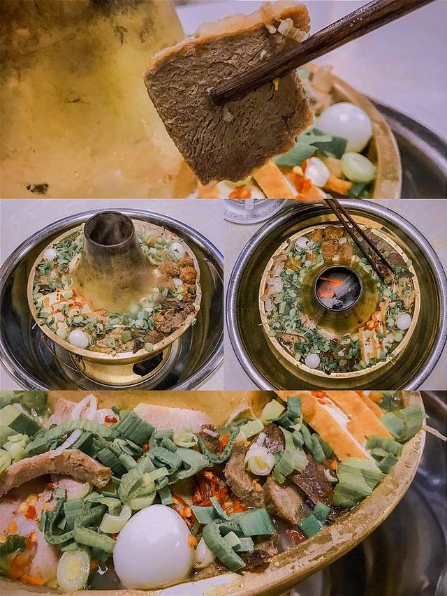 土火锅 / 去 青海 旅游必须要试试土火锅!在一个铜锅里放很多食材,土猪肉、牛肉、肉丸、木耳、菌类、豆腐、萝卜、粉条…只要点一个锅,荤素主食全都齐,上桌的时候食材都熟了可以马上开吃。味道偏清淡,跟其他地方的火锅不一样。