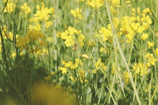 不用特地花钱去观景台,开车一路都是,简简单单就能坐拥整片油菜花田。在油菜花田里穿行,还能看到拱桥、青稞、小房子,偶有蜜蜂蝴蝶停留在花瓣上。走近观察发现油菜花瓣有的是五个瓣,有的是四个瓣,呈十字形。除了油菜花,还看到一片绿绿葱葱的青稞,夏风吹过,涌起一股又一股的波浪,非常日系的一个场景。