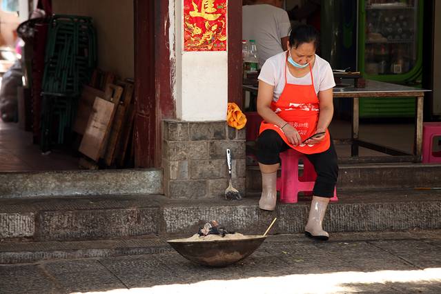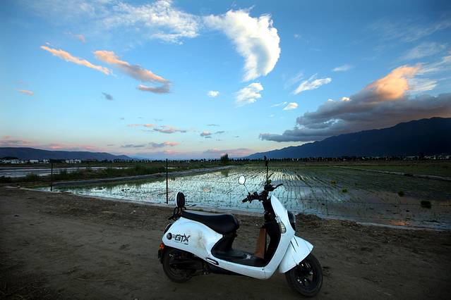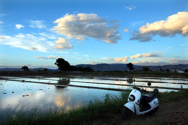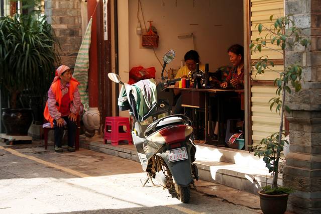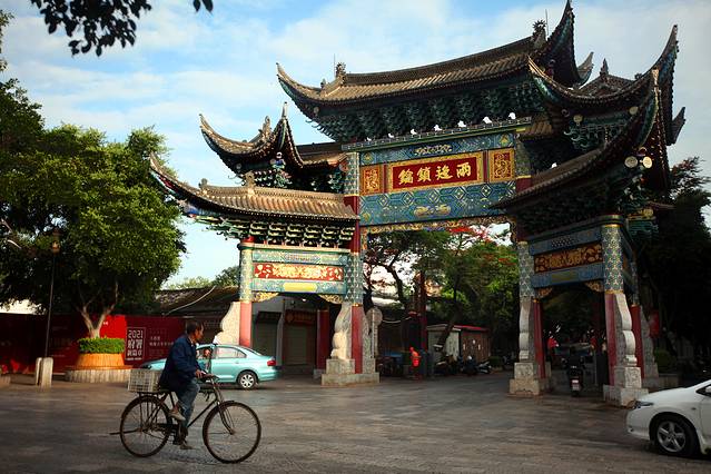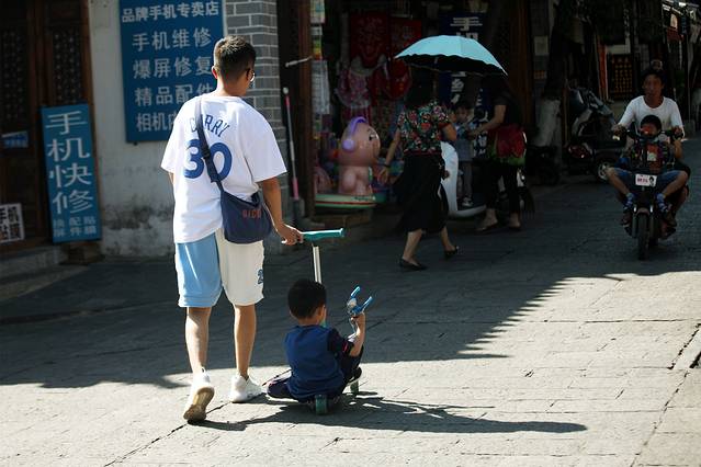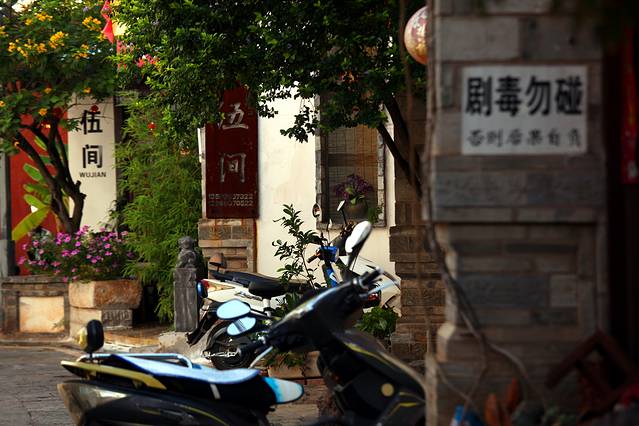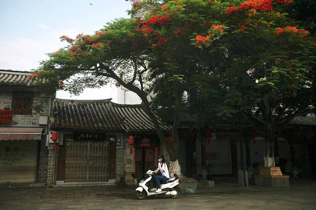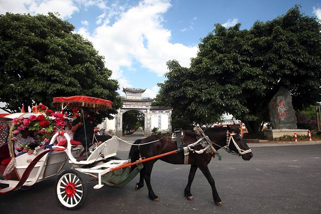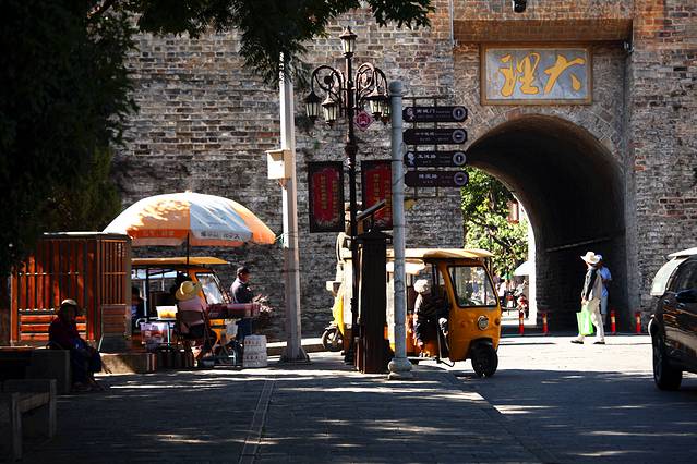 去古城还有一公里,不想走路了,扬手一台三摩,5元,也不算贵,却方便。