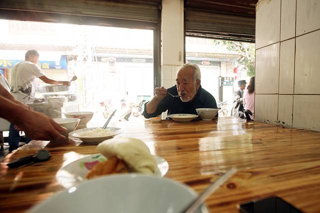 人气渐多,送小朋友上学的,买菜的,上班的都出来了。