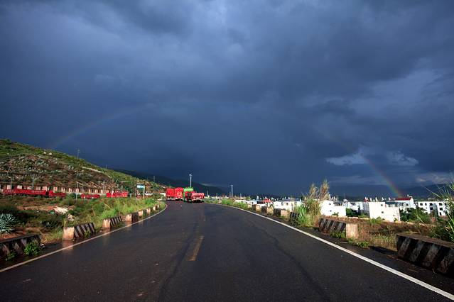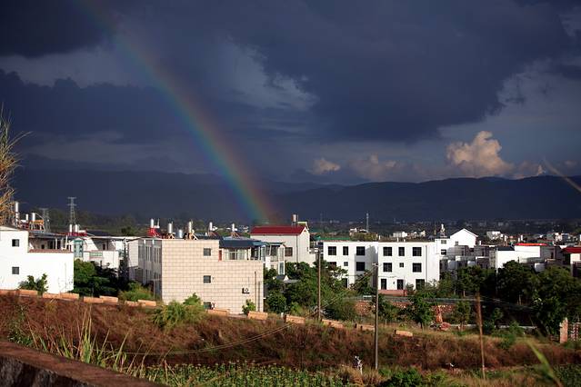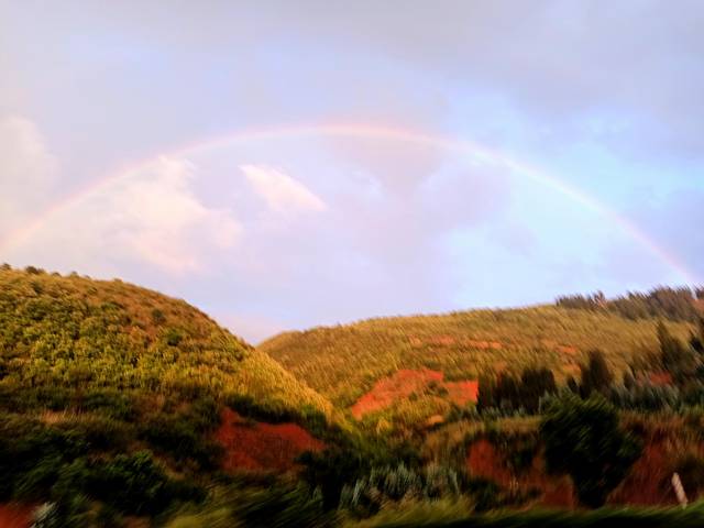 走了约一公里,一回头,哈哈,竟然有彩虹。