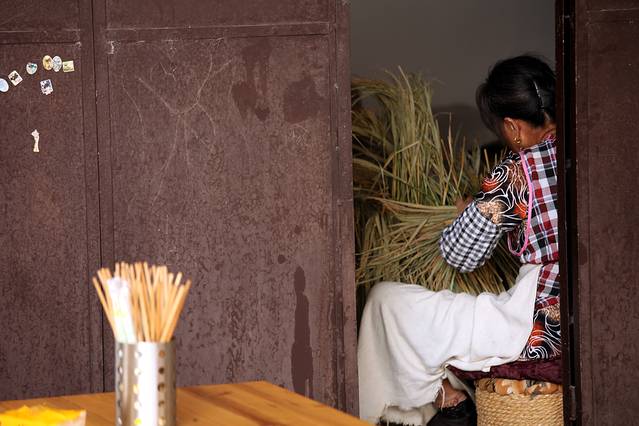 偷偷说一句,在厨房中的一个盆中,有一大块的猪肉,一定是猪肉,室内虽然暗,但还是分得清,证明藏区的喇嘛是吃肉的。