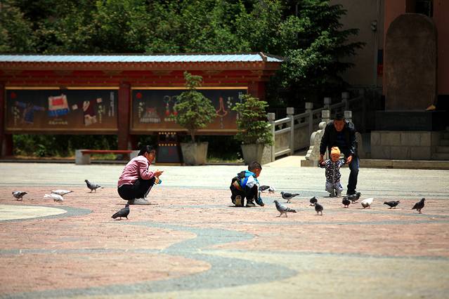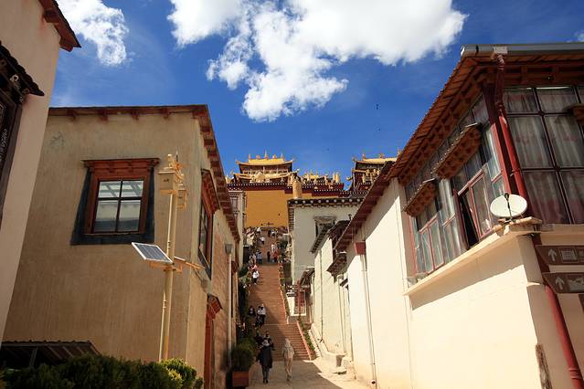 山脚的都是喇嘛住宿的民居,登上阶梯,才到寺里。