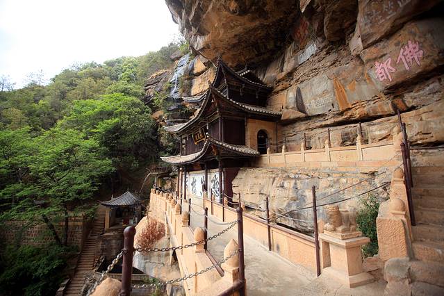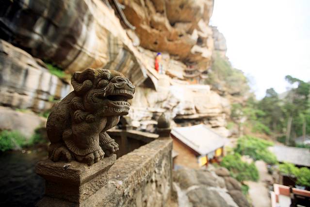 各种殿宇建在悬崖边沿之上,险要之极,站于亭阁上,令人眩目。