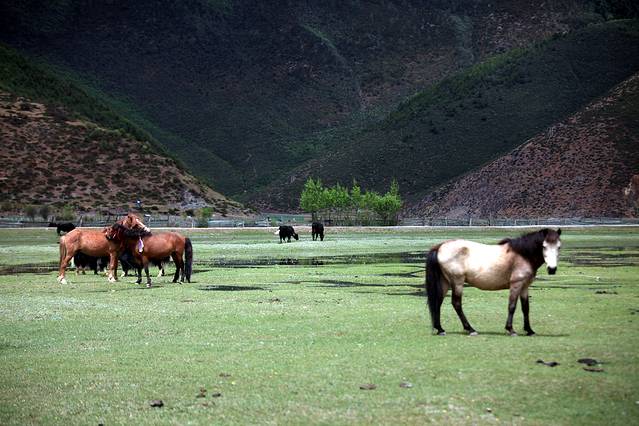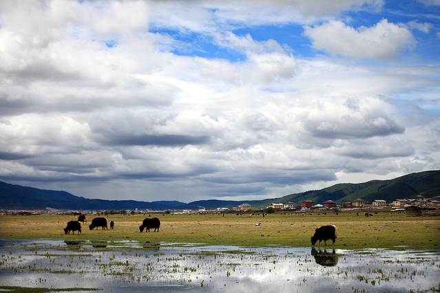 从哈木谷村徙步穿越这一小片草海到吉努谷村,有5公里远,不习惯远足的也会觉辛苦的哦。