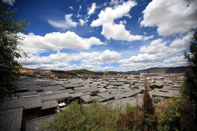 这里唐代时期,土蕃就在这里的大龟山顶设立寨堡,名"独克宗",独克宗藏语发音包含了两层意思,一为"建在石头上的城堡",另为"月光城"。是茶马古道上的重镇,也是马帮进入藏区的第一站。
