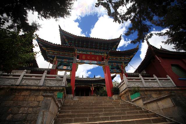 宝相寺又名石宝寺,因建筑奇险,被誉为"云南的悬空寺"。为明正统年间鹤庆土知府高论所建,初为道观,后来佛教兴盛,除玉皇阁外,大多庙宇均祭佛像,成为一个佛道合流的场所。