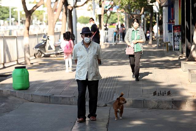 天气晴好,阳光洒落晨运者的身上,镀上一层金黄。