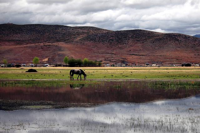 纳帕海,就是一遍湿地,不过现在不是雨季,水面积不大。
