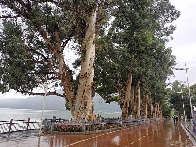 旁边的桉树十分粗壮旺盛,不过都没有树皮,不知什么品种。