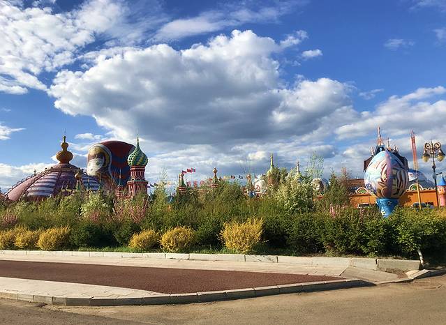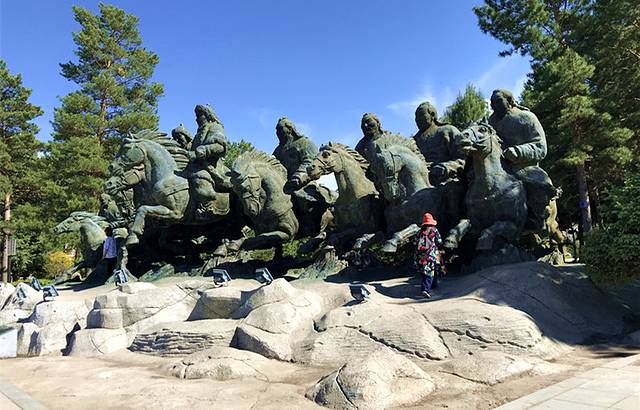 从草原部落到满洲里市区,车程也不过2、3个小时,一路上经过许多标志性的建筑物,很多地方都能看到苏联的小火车,大妈们尤其喜欢攀爬拍照。