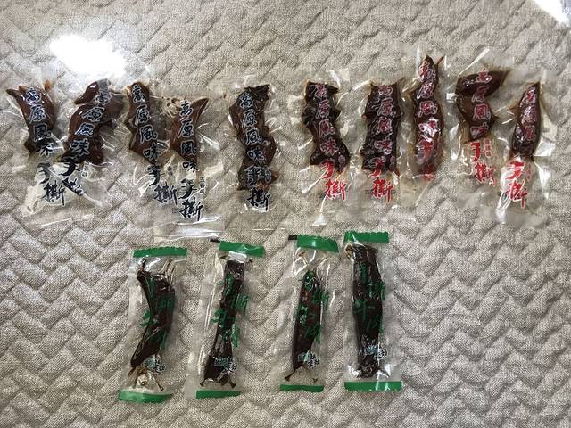 回到家后,打开袋再仔细一瞧,辣味混进来不少,五香和辣味的所谓“牛肉干”跟店里面吃到完全不一样,根本吃不到是牛肉的口感,而更像是鸡肉(甚至可能是豆制品),而只有原味的牛肉干,稍微有点像牛肉的口感,但是整包里面却只有寥寥几根。后来跟导游说到这个事,她言辞回避不给正面答复,因为没有收款收据,无法维权,好在我买的也不多,也好当做交智商税了。