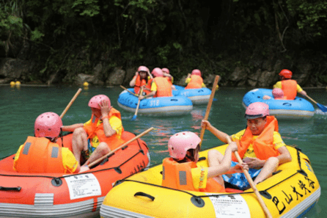 1.亲子漂流胜地:巴山大峡谷漂流河道全长4公里,漂流时间大约1个小时,尽管会有落差,但整体漂流地势更适合亲子漂流,可以增进彼此之间的感情。