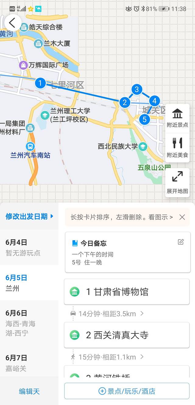 兰州景点并不多,市区内只有一个博物馆和黄河。公交还是很方便的,高德地图可以直接搜。