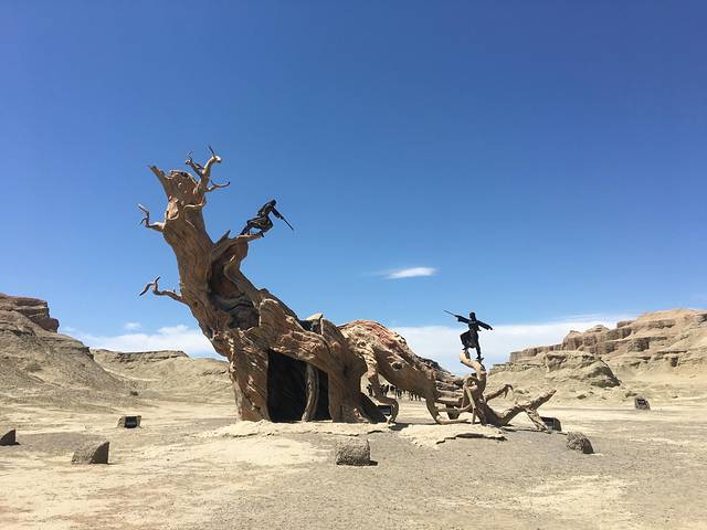 魔鬼城通俗讲就是风化的土堆、山坡等,丹霞地貌,有人面狮身等景点,还有七剑下天山、卧虎藏龙的取景点。个人对这个魔鬼城没什么感觉。门票每人62元,包括区间车。